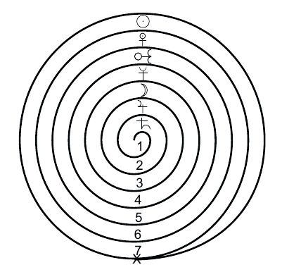 round which the Sun, the Moon, and the other planets follow their respective paths. The Sun has the